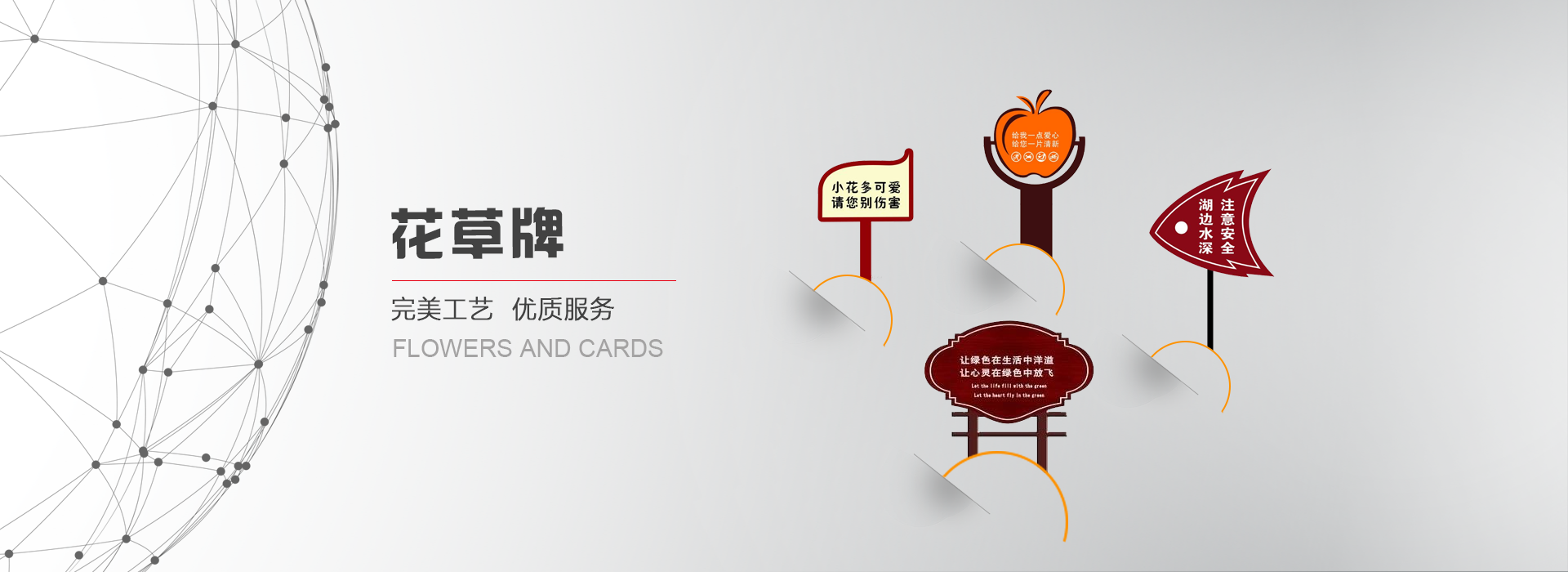 花草牌是指樹(shù)立在花草叢中用于提示愛(ài)護(hù)的標(biāo)識(shí)牌。又稱(chēng)牌或草牌,屬于溫馨提示的范疇?;ú菖埔话爿^矮,一般高度在40公分到1.2米之間,是雙面,厚度一般是4公左右。有鋼板的,有純實(shí)木的,或上述材質(zhì)相互結(jié),制作工藝為: